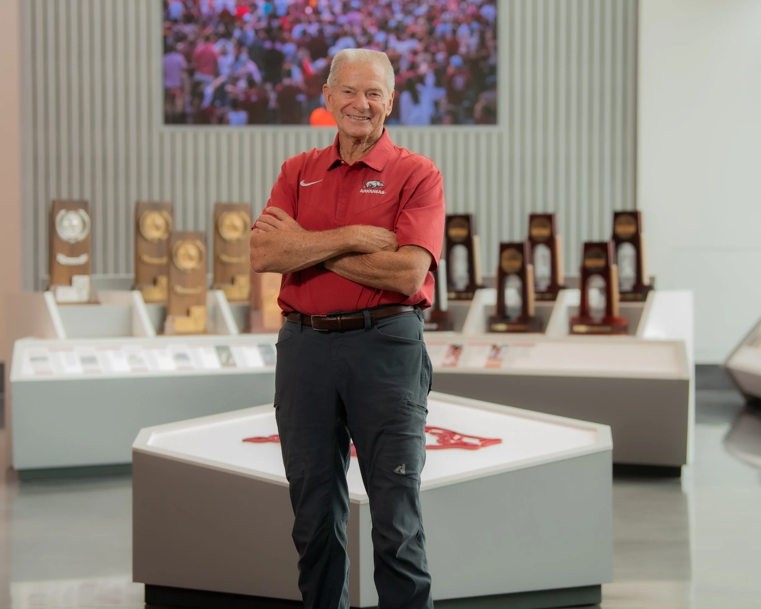 Norm DeBriyn is the winningest coach in the University of Arkansas history, leading the Razorbacks for 33 seasons from 1970 to 2002. He amassed 1161 wins and lead the Hogs to 15 NCAA Tournament appearances and four College World Series appearances, finishing as the runner up in 1979.